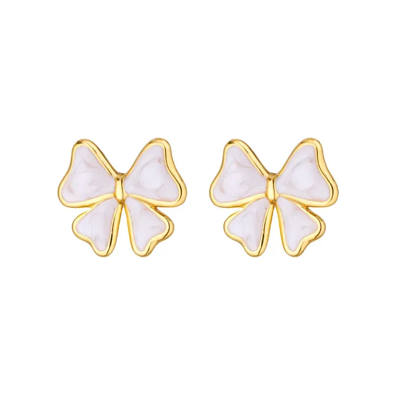 arete dorado lazo blancoArete Dorado Lazo Blanco